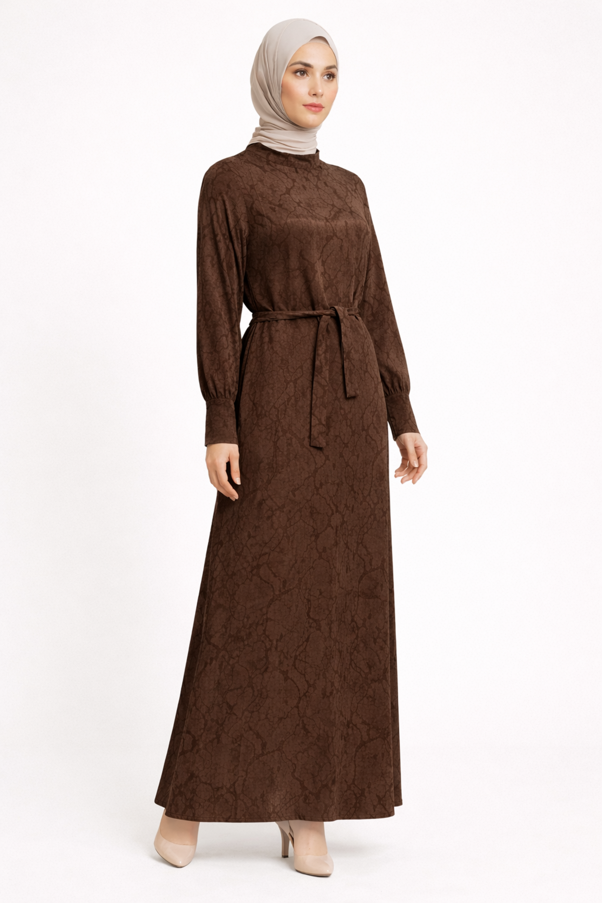 YAN PİLELİ KEMERLİ KUPRA ELBİSE