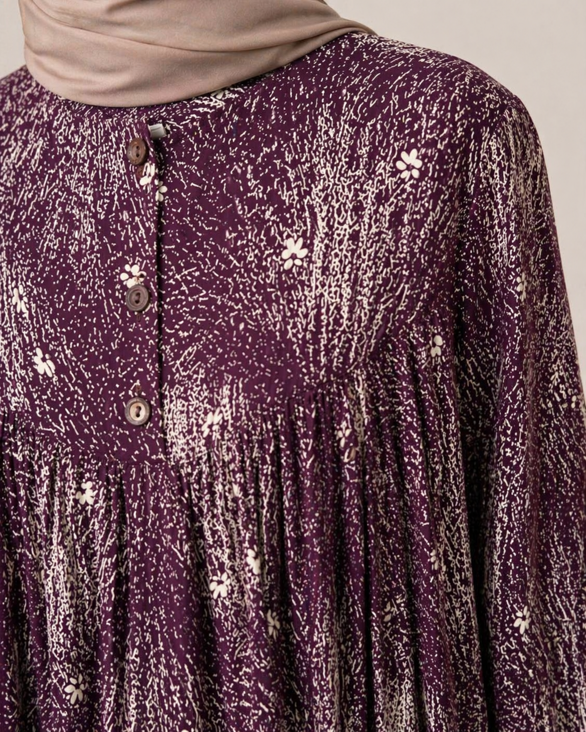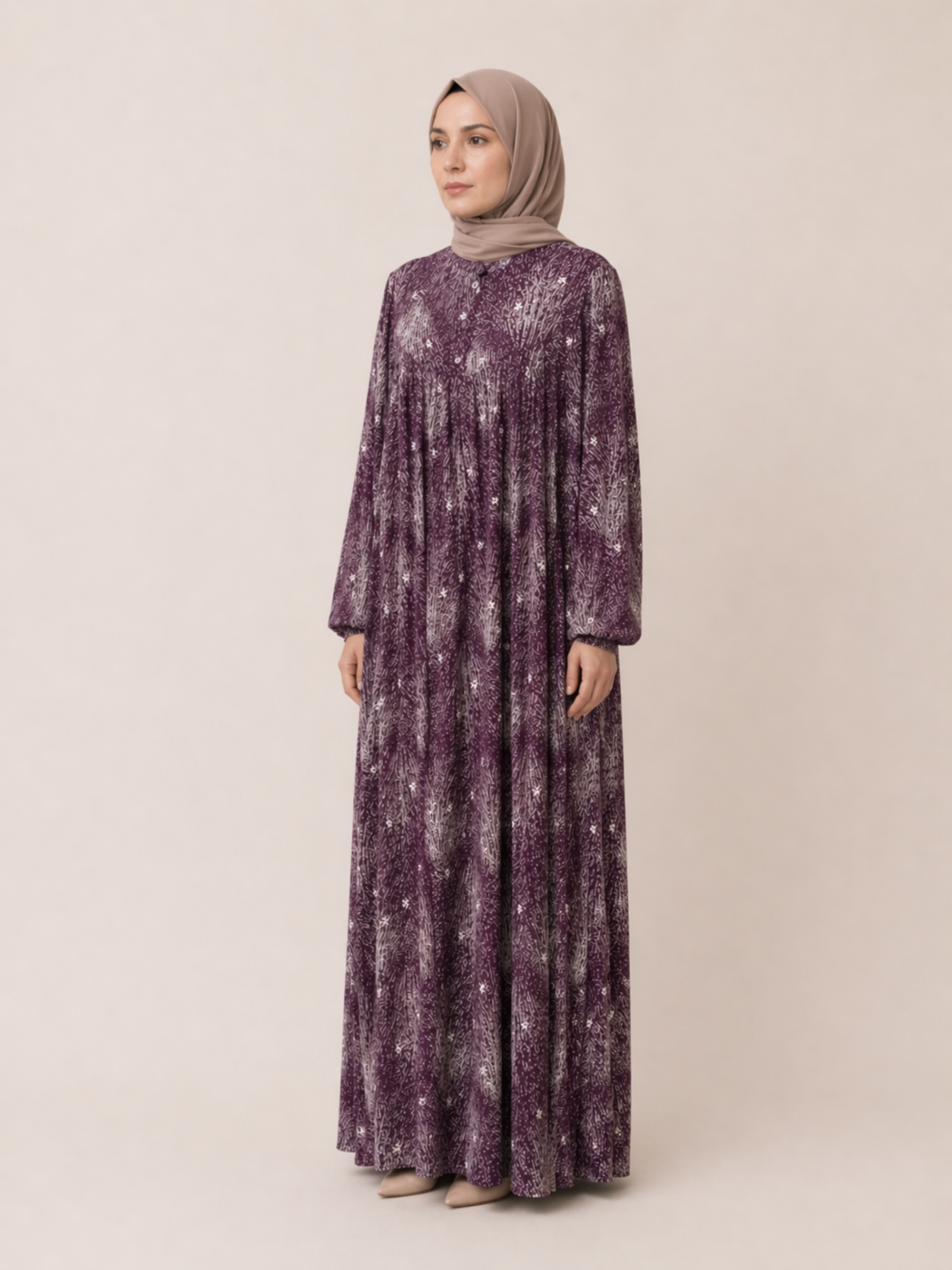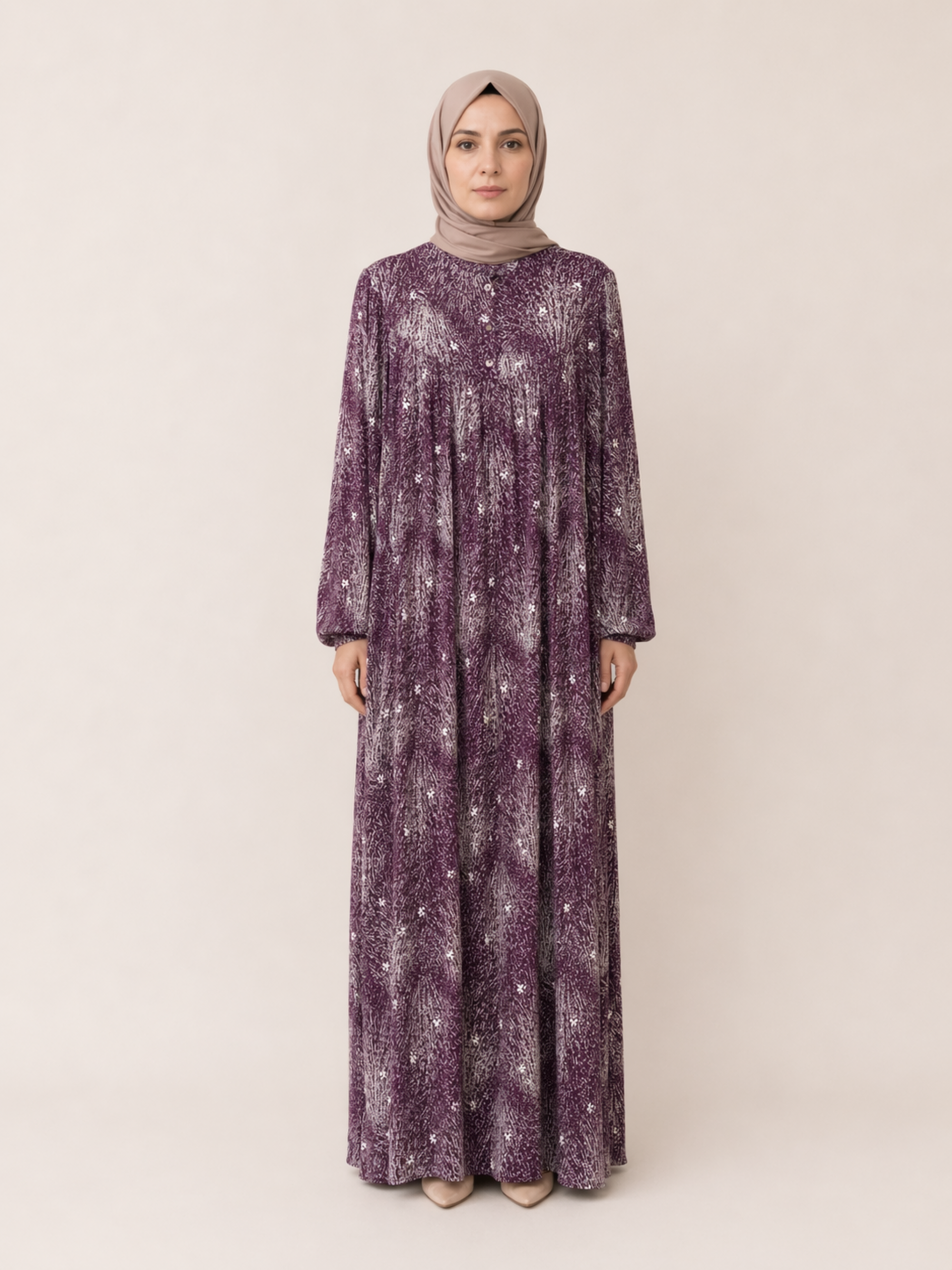YUVARLAK ROBA DESENLİ VİSKON ELBİSE