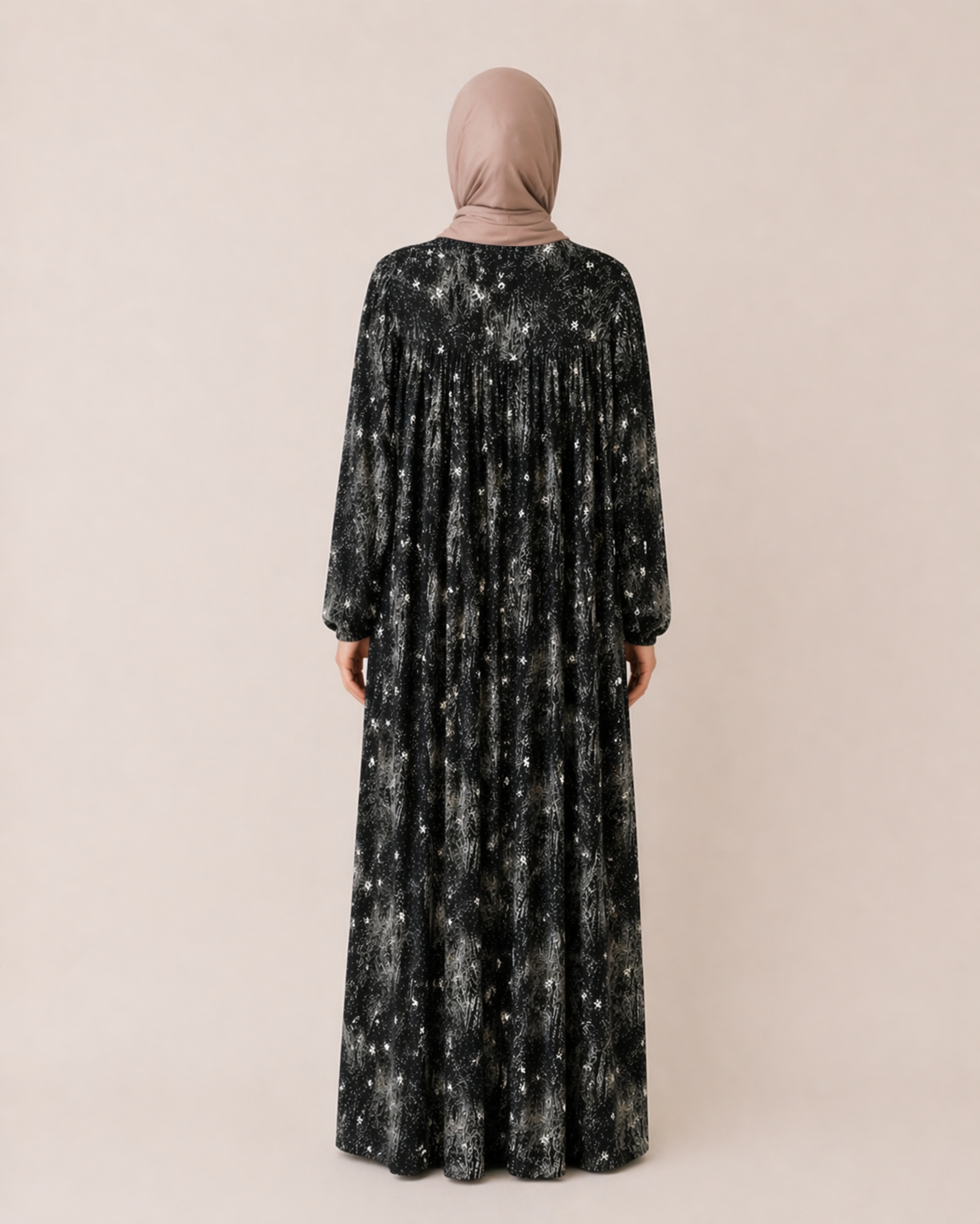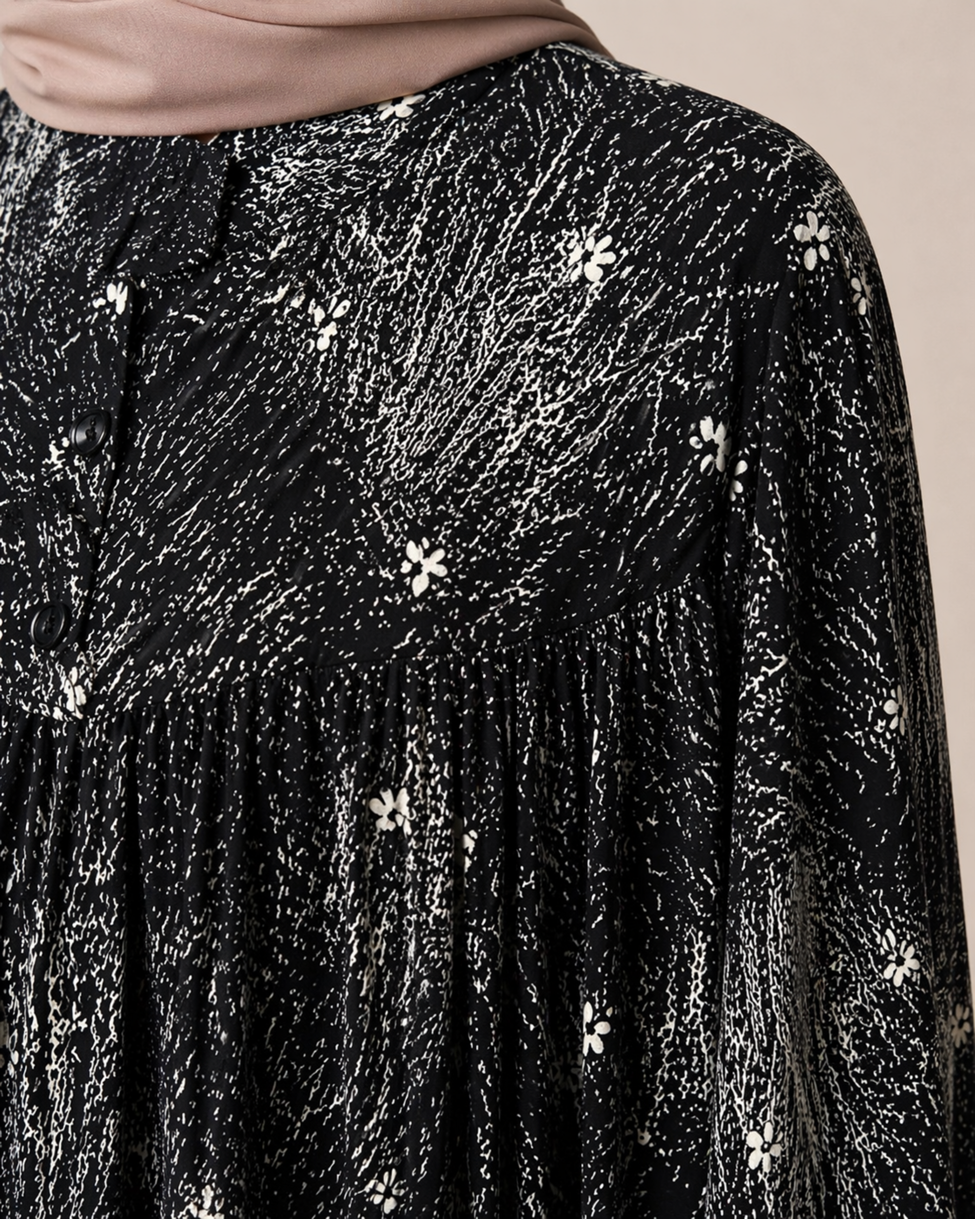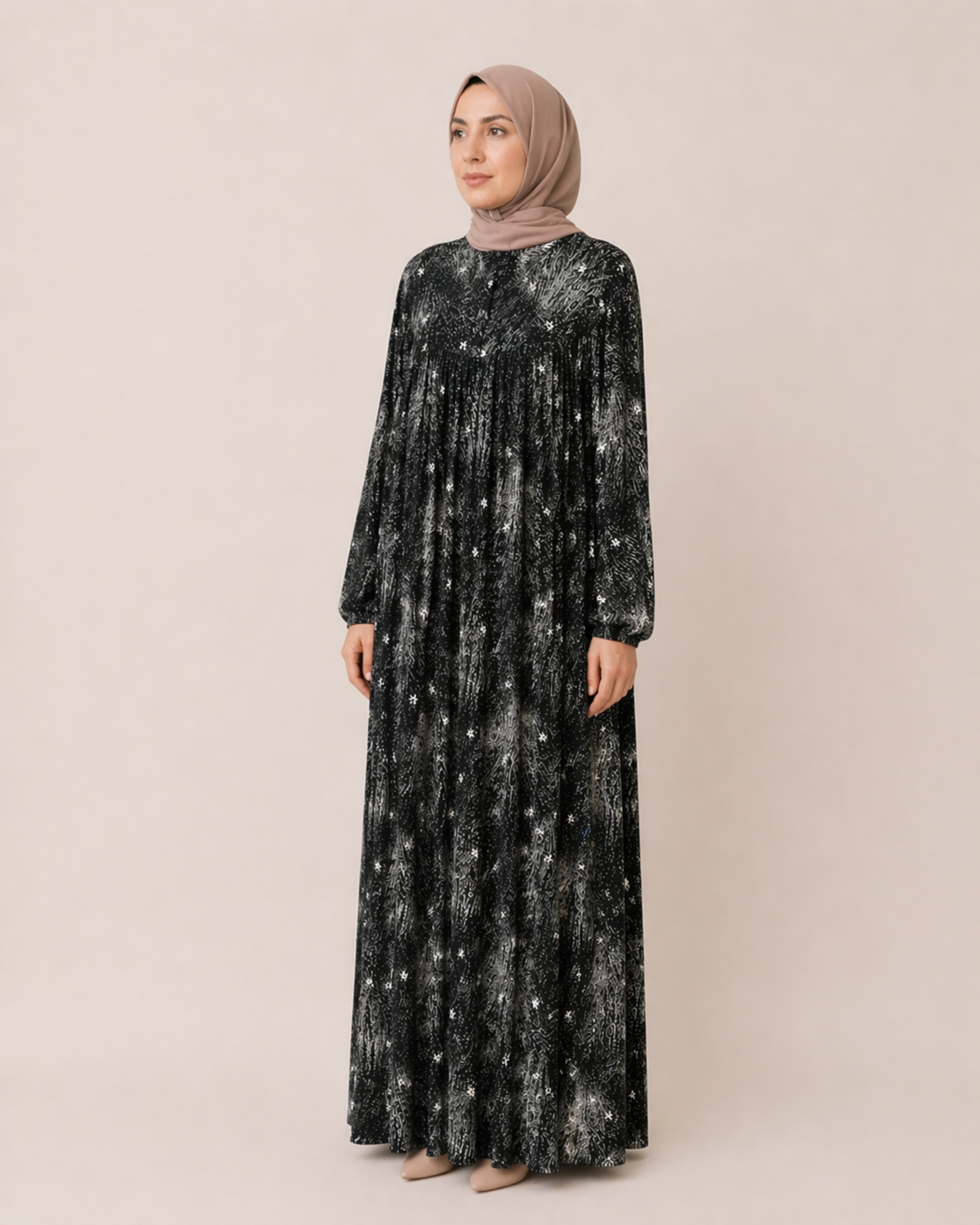 YUVARLAK ROBA DESENLİ VİSKON ELBİSE